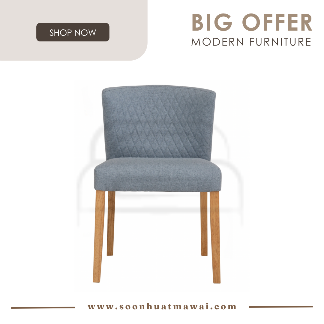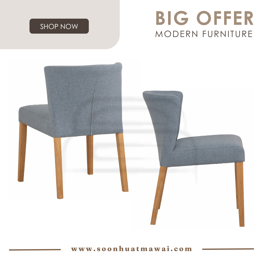 Rhoda dining chair with Natural colour leg, Light Blue colour Double fabric seat & back