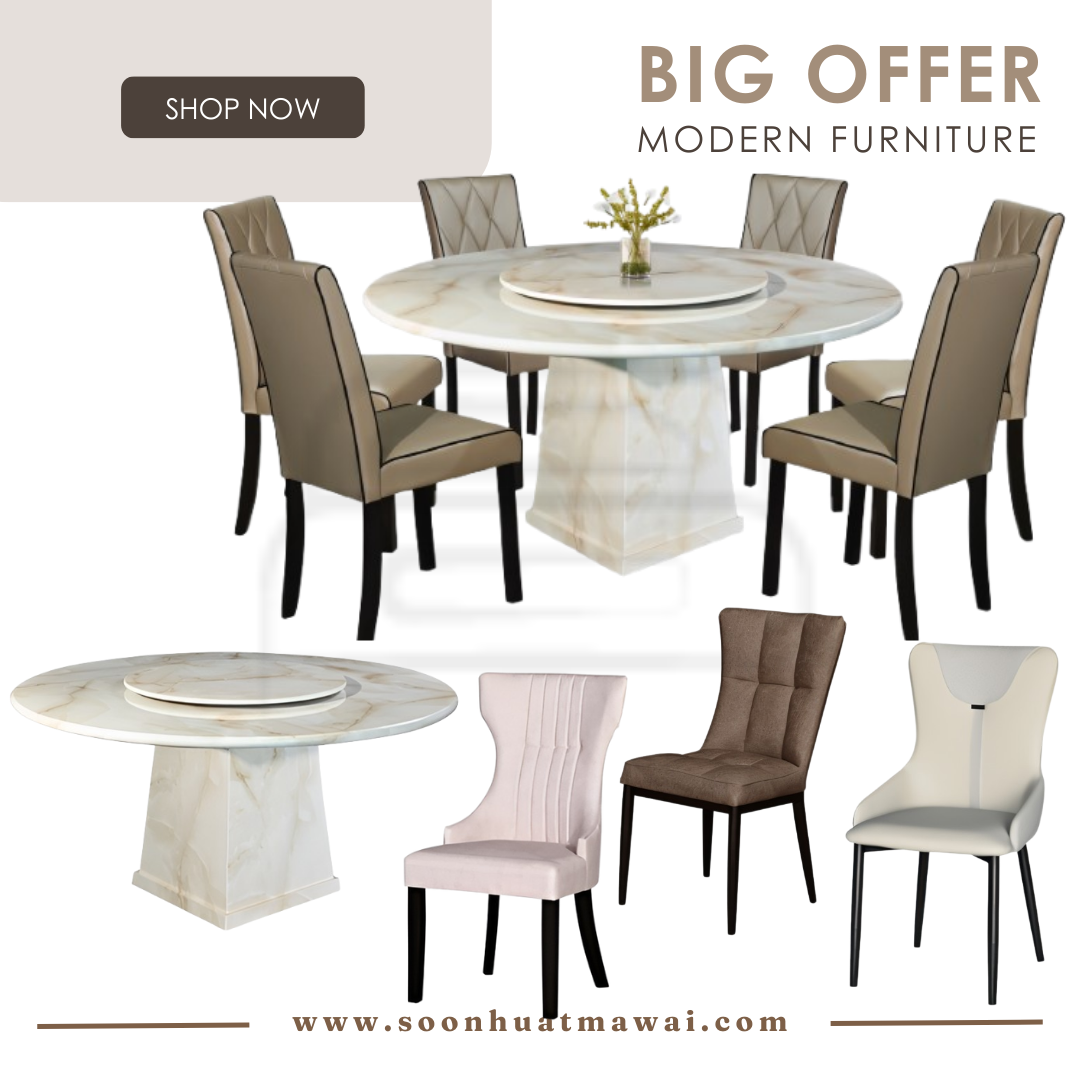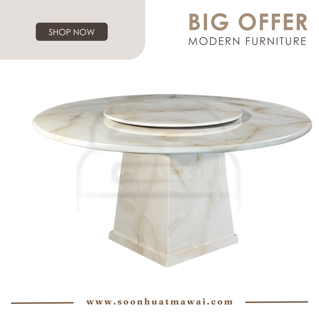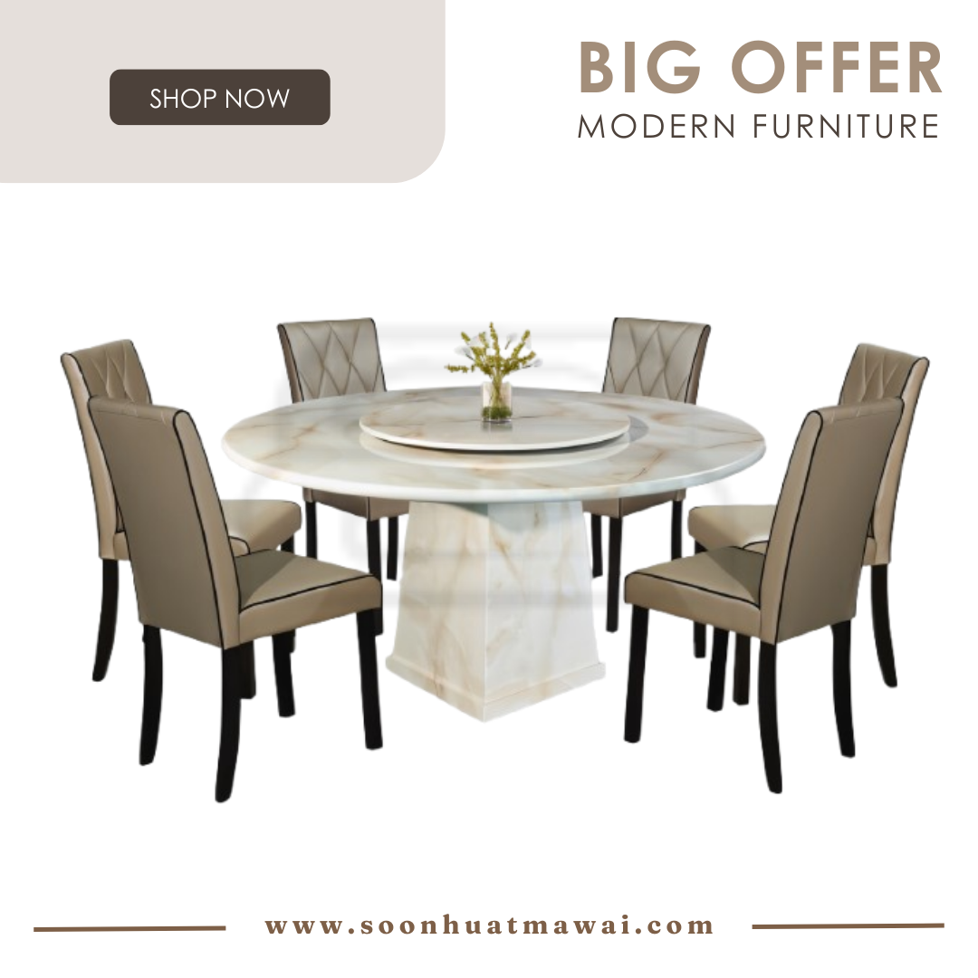 S6 DINING SET 1+6 9505 (STONE) S6: L135 D135 H76 9505: L45 D58 H97 CAN CHOOSE DESIGN CHAIR: - 9505 (STONE) - 990 - J-C8-7 BROWN - LS01