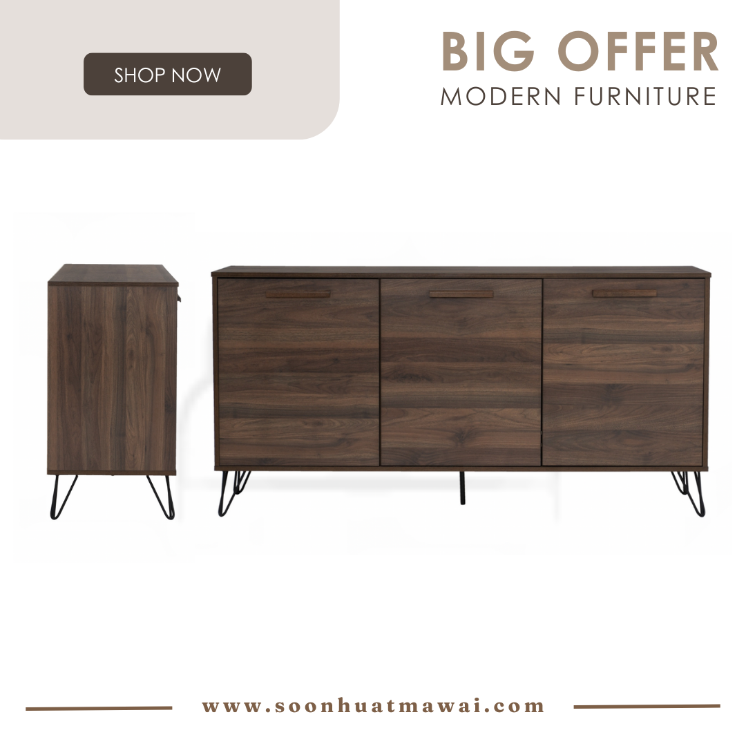 Samos 1.49m sideboard in Matt Black Epoxy colour leg, Walnut colour top