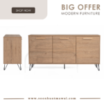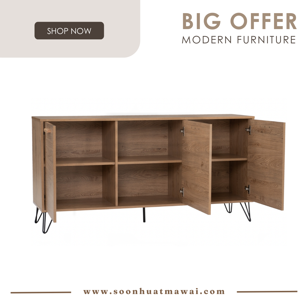 Samos 1.49m sideboard in Matt Black Epoxy colour leg, Oak colour top