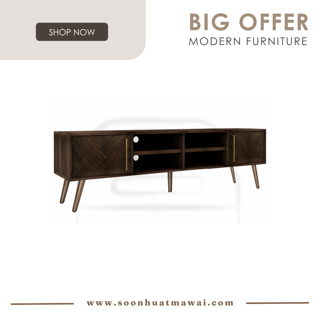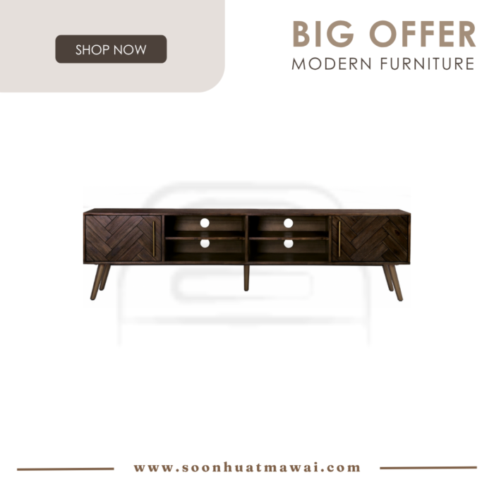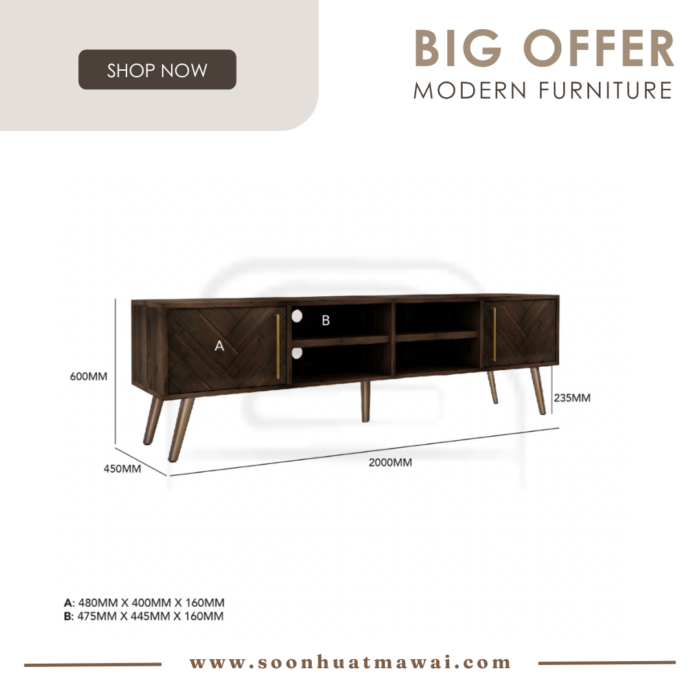 Sivan 2.0M TV Cabinet with Dijon colour leg, Chocolate Tyrolean Beech body