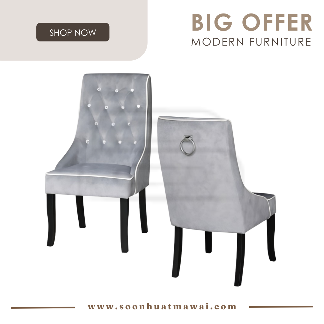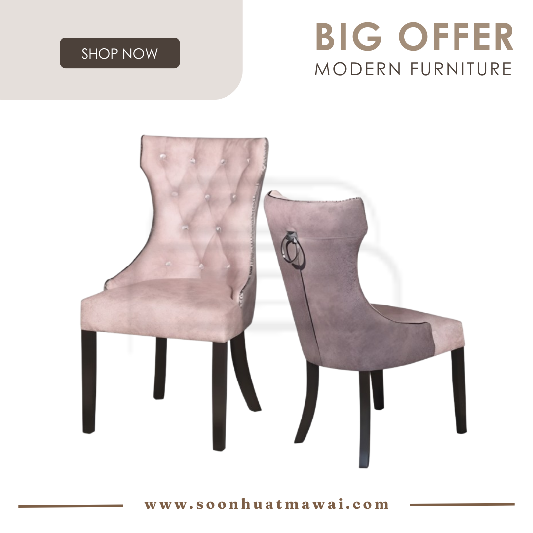 SK111 (GREY) DINING CHAIR L55 D68 H103 COLOUR: GREY SK111 (BEIGE) DINING CHAIR L55 D68 H103 COLOUR: BEIGE MJ85 DINING CHAIR L53 D62 H98 COLOUR: PINK ***AT LEAST BUY 2 PCS FOR EVERY PURHASE