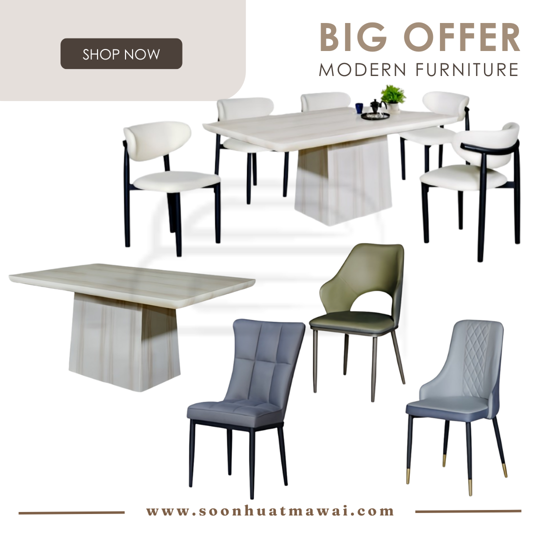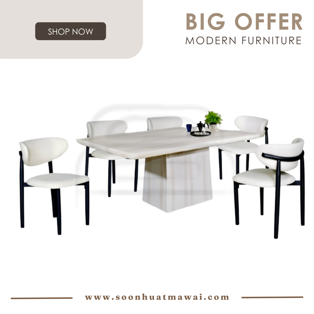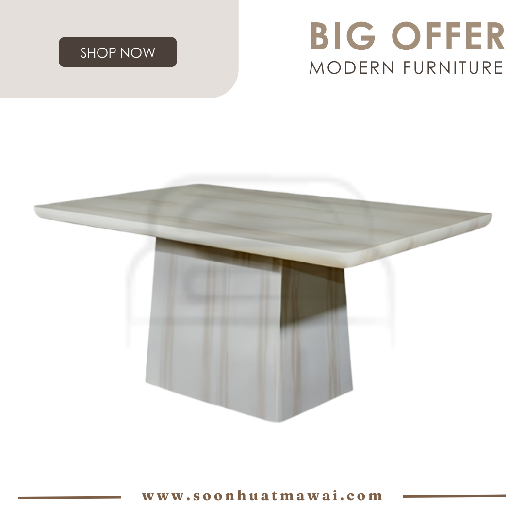 SM01 DINING SET 1+6 062 (BEIGE) SM01: L160 D90 H76 062: L48 D56 H76 CAN CHOOSE DESIGN CHAIR: - 062 (BEIGE) - SC-249 (GREY) - J-C8-9 (GREY) - 156