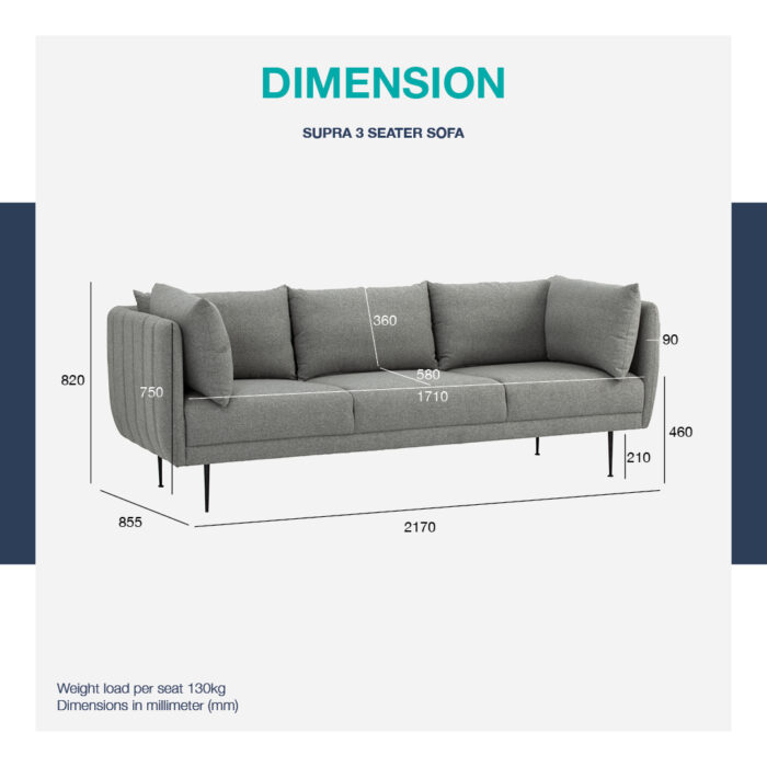 Supra 3 seater sofa with Dull Gold colour leg, Chrome colour in Shanturp fabric