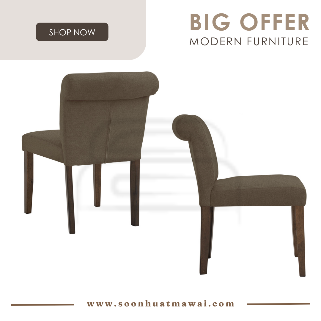 Suzy dining chair in Dark Chestnut colour leg, Chestnut colour Challis fabric