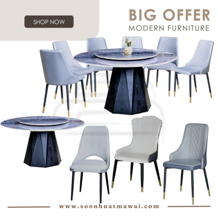 T-2313 DINING SET 1+6 SK112 (HM3385-4) T-2313: L130 D130 H76 SK112: L54 D63 H89 CAN CHOOSE DESIGN CHAIR: - SK112 (HM3385-4) - 881 - J-C8-7 GREY - C2303