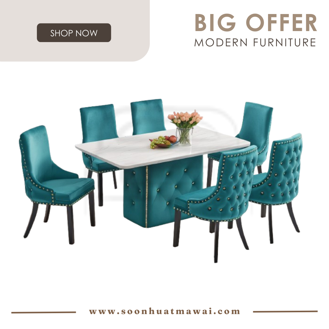TABLE LEG CHESTERFIELD+9015 DINING SET 1+6 T : TABLE LEG CHESTERFIELD (GREEN) + 9015 (166) L1500 W900 H750mm C : ATN62 (GREEN) W540 D540 H980mm COLOUR: GREEN --------------------------------- TABLE LEG CHESTERFIELD+9015 DINING SET 1+6 T : TABLE LEG CHESTERFIELD (DARK GREY) + 9015 (166) L1500 W900 H750mm C : ATN62 (DARK GREY) W540 D540 H980mm COLOUR: DARK GREY