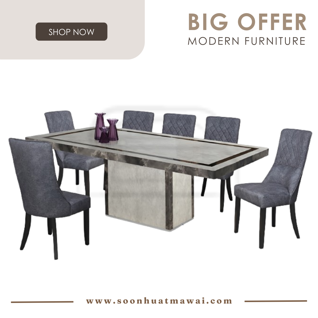 TC21 DINING SET 1+8 MJ78 TC21: L210 D110 H76 MJ78: L52 D61 H101 CAN CHOOSE DESIGN CHAIR: - MJ78 - J-C8-9 (GREY) - MJ76 (LV006) - Y34 (GREY VELVET)(ROTATING)