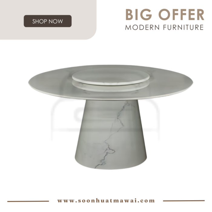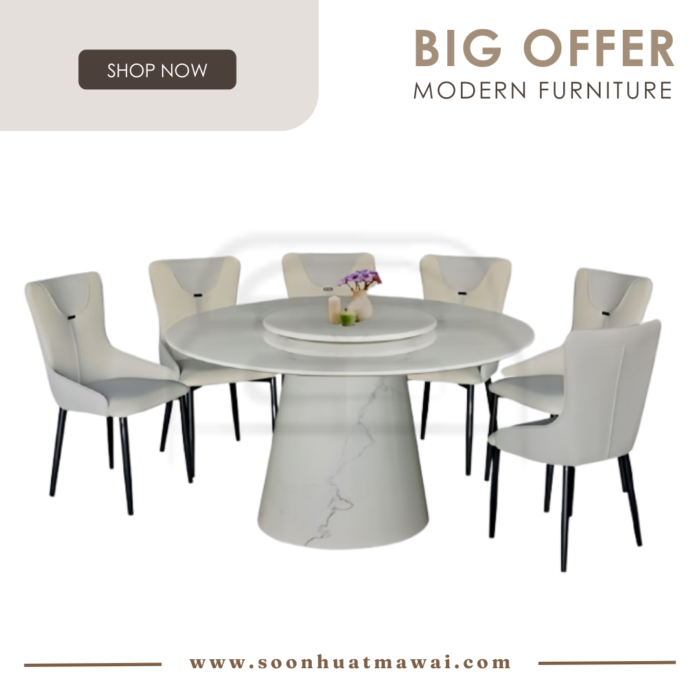 TC63 DINING SET 1+6 990 TC63: L135 D135 H76 990: L48 D56 H89 CAN CHOOSE DESIGN CHAIR: - 990 - 095 (MZ-5)BEIGE - 986 GREY - 116 GREY