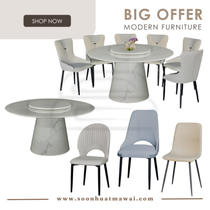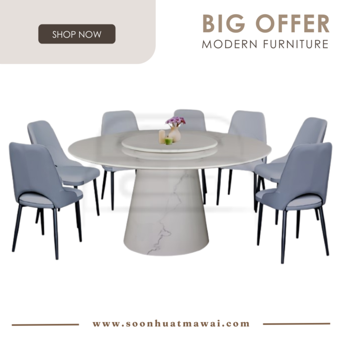 TC63 DINING SET 1+8 116 (GREY) TC63: L150 D150 H76 116: L49 D59 H93 CAN CHOOSE DESIGN CHAIR: - 116 (GREY) - 9866 GREEN - 881 - F338