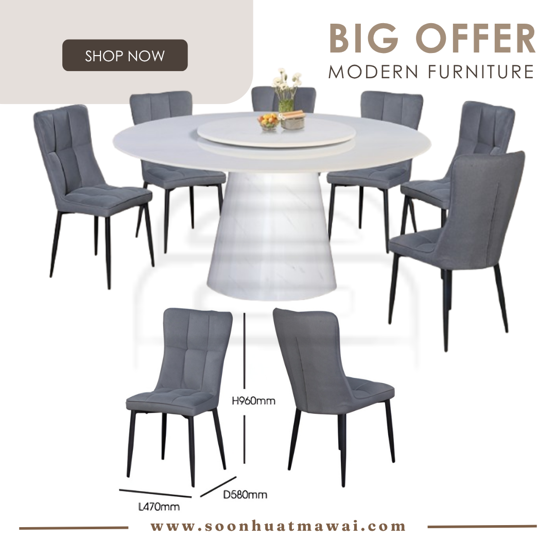 WL212+M2146 + MJ154 / MJ147 / 2582 DINING SET 1+6 Regular price RM5,328.00 RM6,992.00Price range: Regular price RM5,328.00 through RM6,992.00On sale price RM4,049.00 RM5,314.00Price range: On sale price RM4,049.00 through RM5,314.00