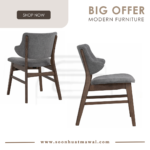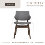 Tessa Dining Chair with Cocoa colour leg, Grey Green colour Moleen fabric
