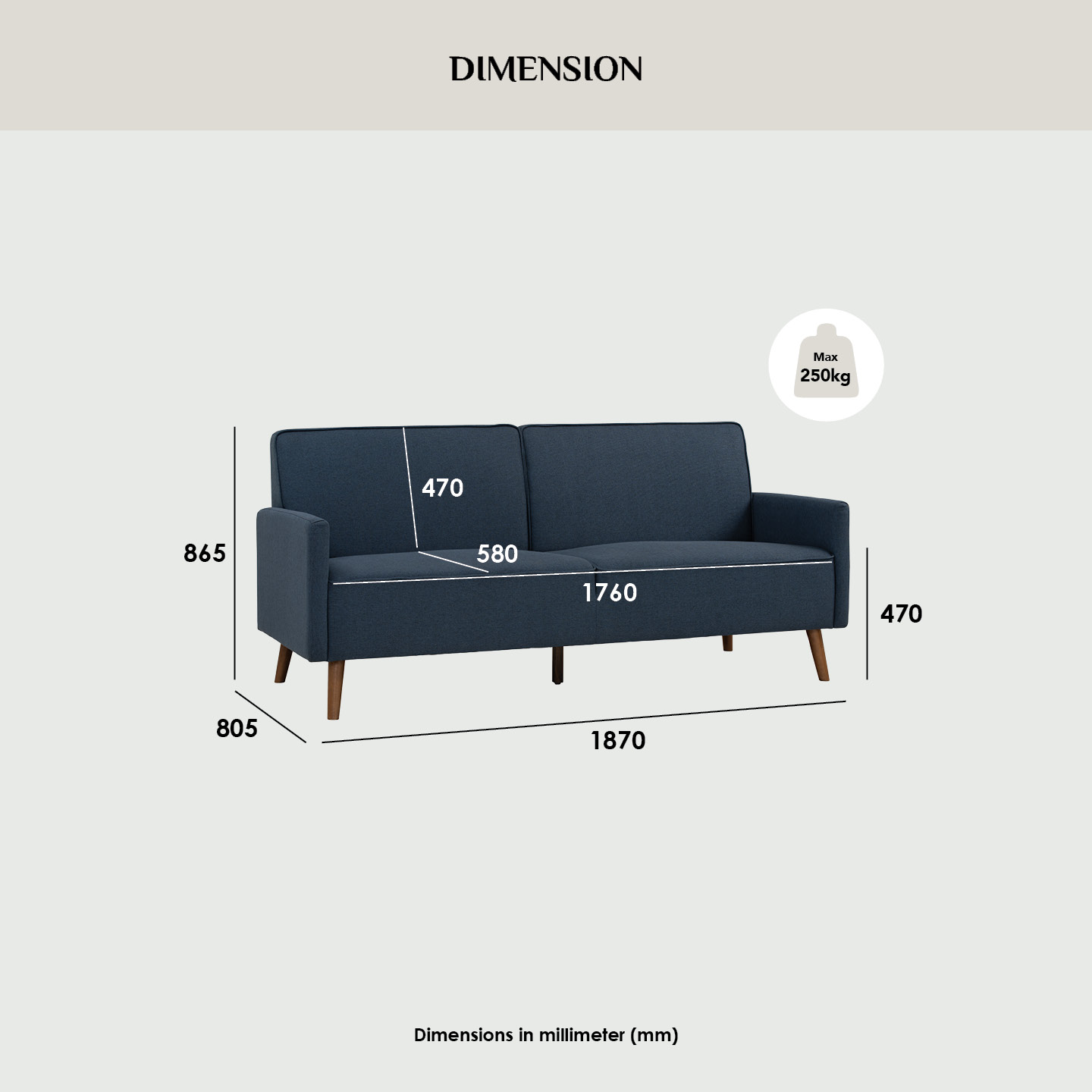 Dimension (mm): W1870 D805 H865 SH470