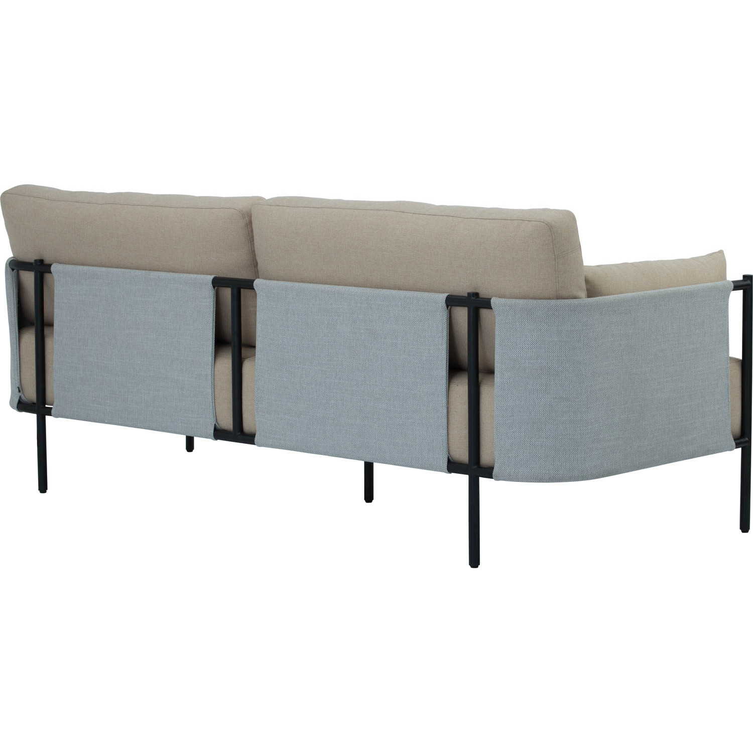 Tredia 3 seater sofa with Matt Black Epoxy leg, Tortilla colour body in Tricot fabric and White Grey colour back cover in Linsey fabric