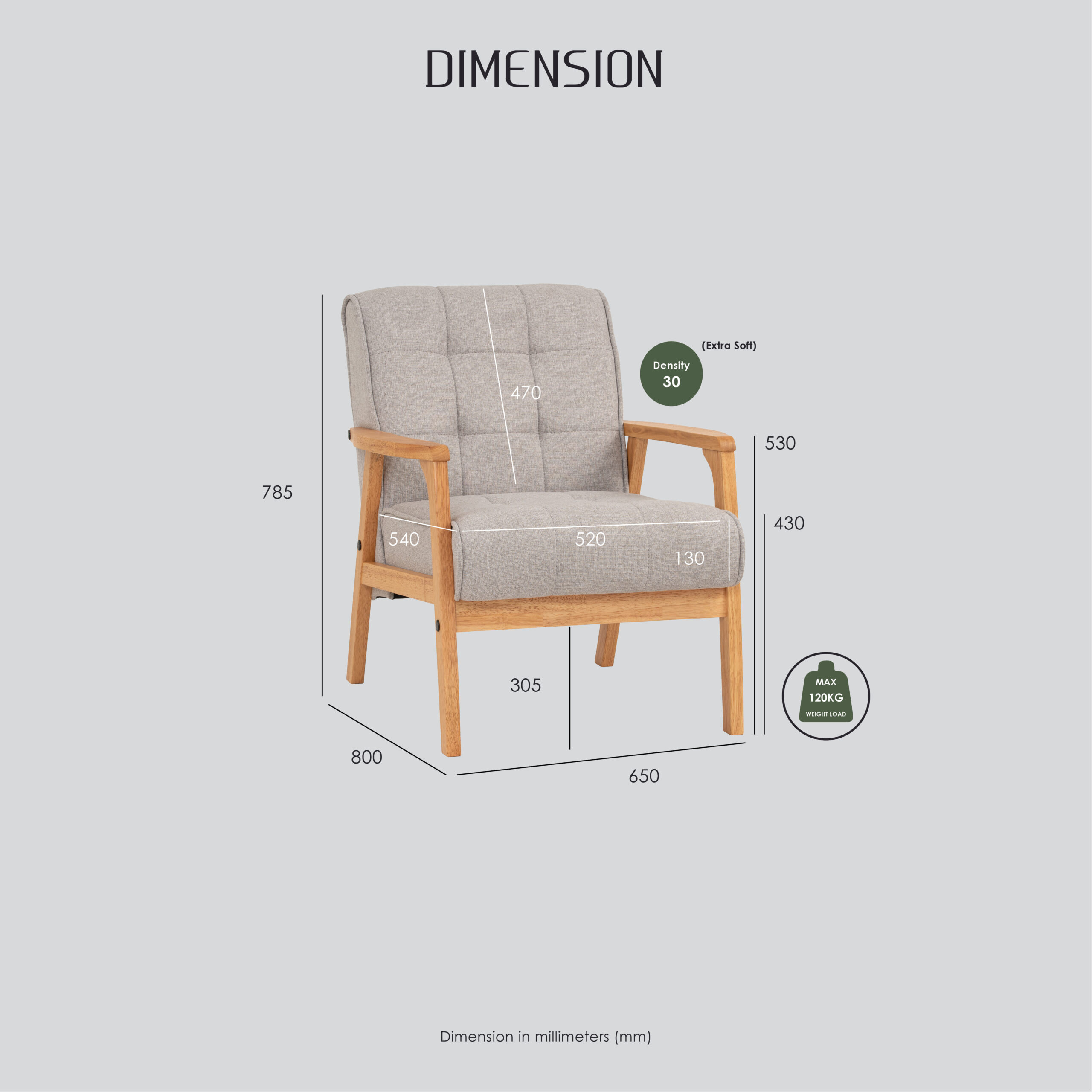 Tucson 1 seater sofa in Natural colour, Light Grey colour Challis fabric