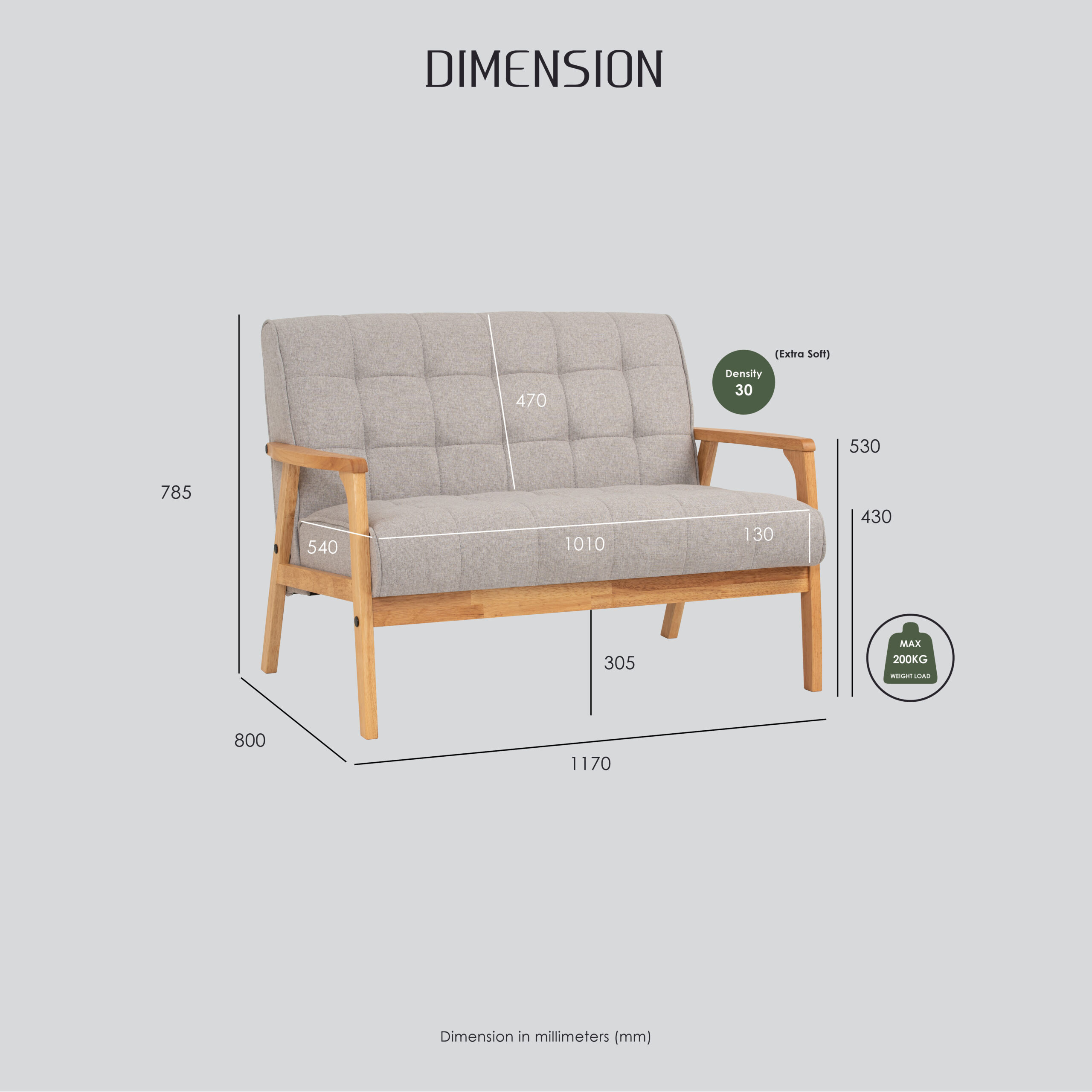 Dimension (mm): W1136 D800 H780 SH430
