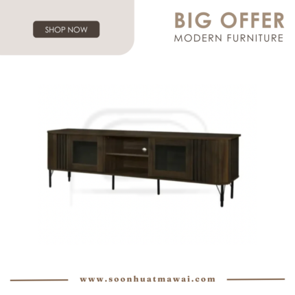 MATERIAL: PARTICLE BOARD, PLASTIC LEG SIZE: L1800 x W400 x H470MM WEIGHT: 36KG M3: 0.08 DESCRIPTION: TV CABINET