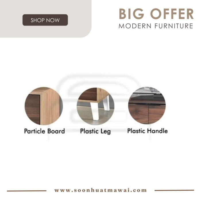 TV-5186 MATERIAL: PARTICLE BOARD , PLASTIC LEG & HANDLE SIZE: L1600 x W400 x H510MM
