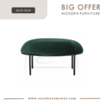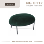 Vamos oval pouf with Matt Black Epoxy leg, Dark Green colour in Veloutine fabric.
