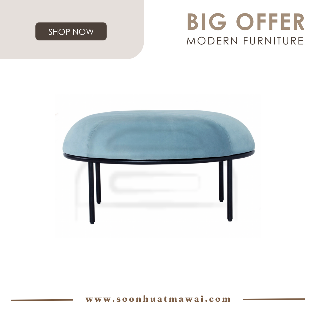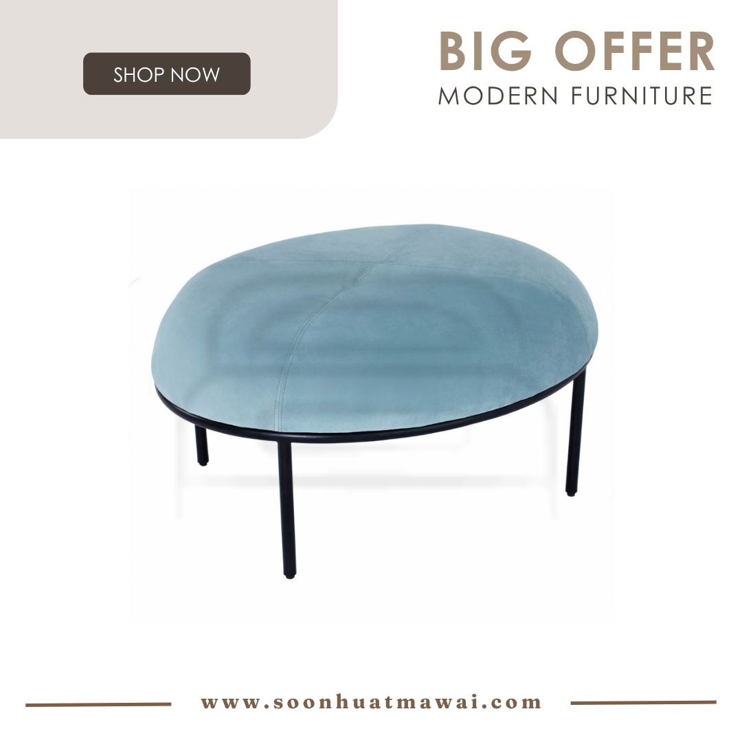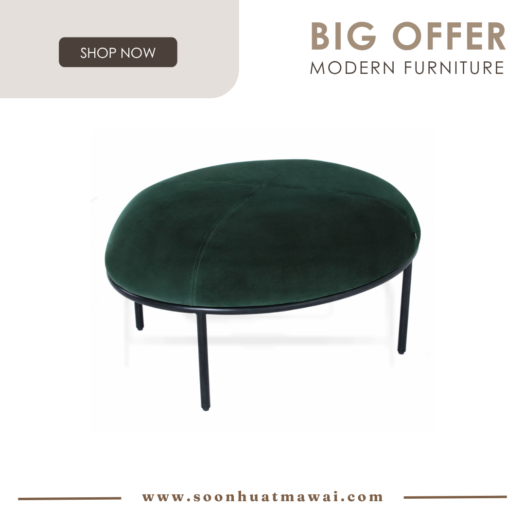 Vamos oval pouf with Matt Black Epoxy leg, Jade colour in Veloutine fabric.