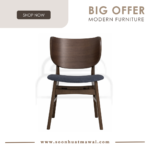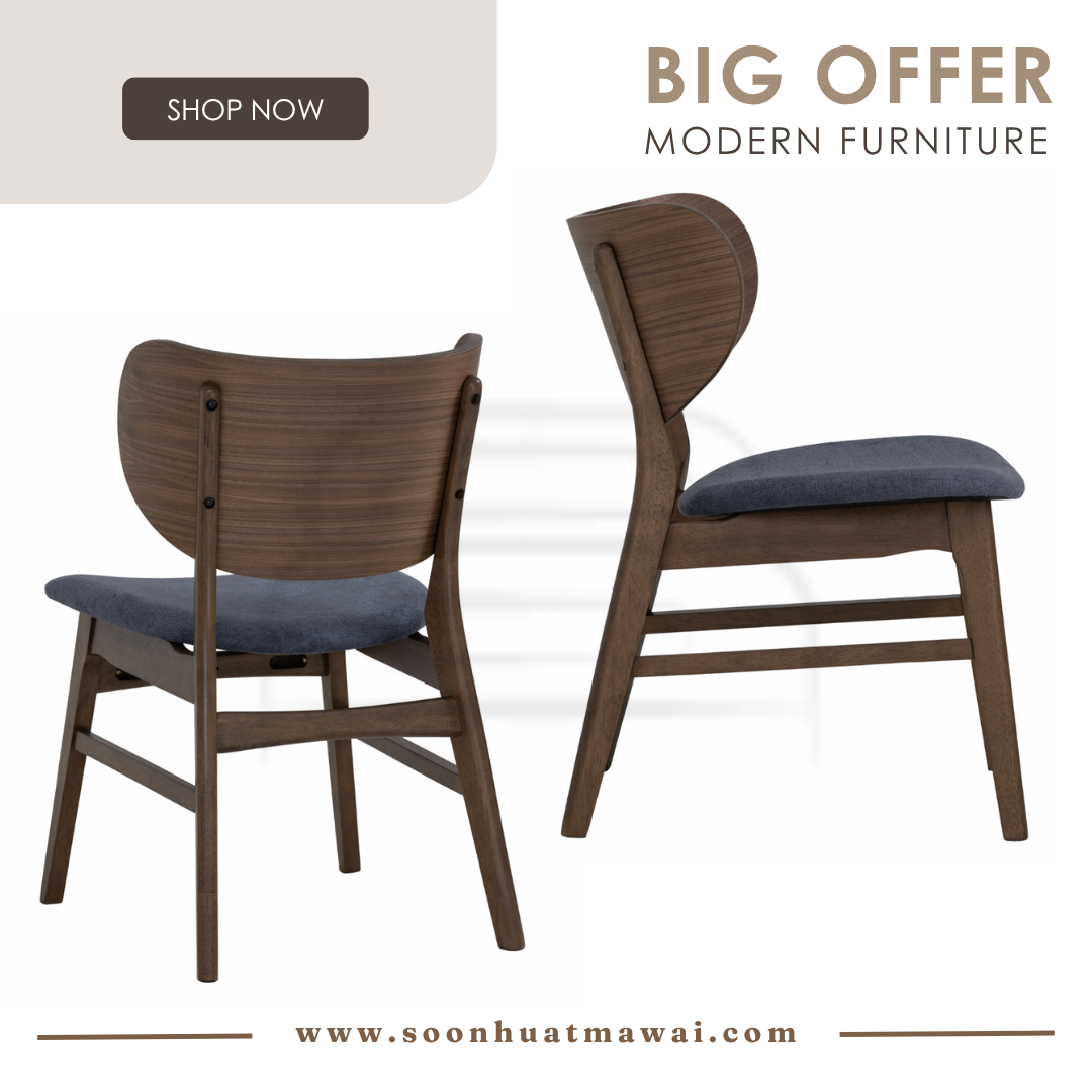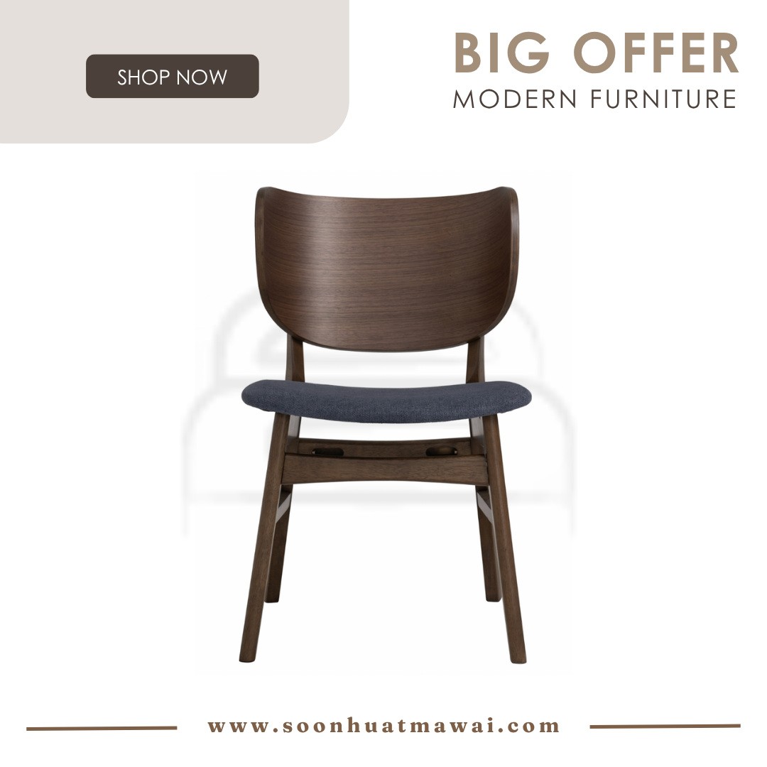 Vanna Dining Chair with Cocoa colour leg, Walnut veneer chair back and Dim Blue colour Moleen fabric