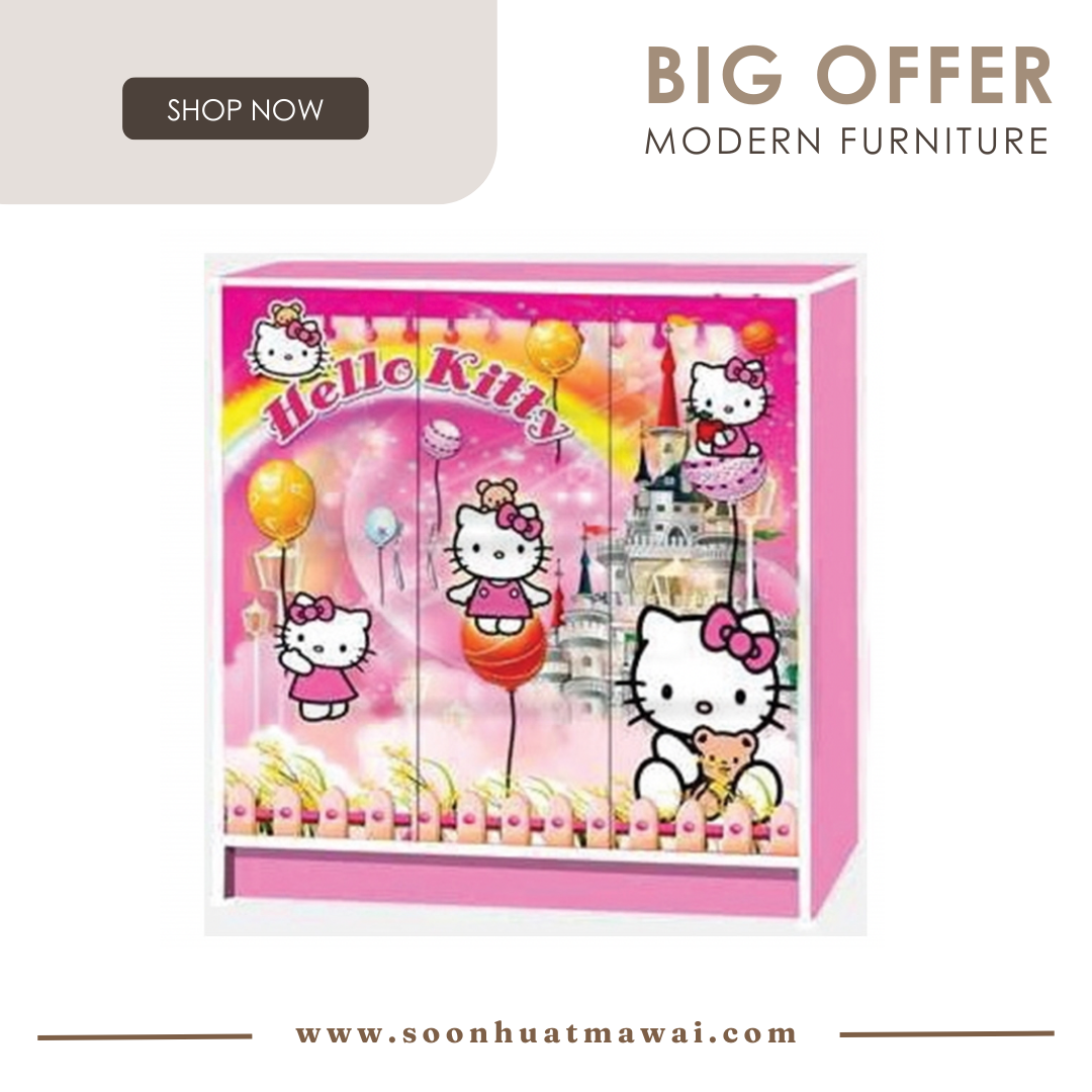 Wonderland 3 door cartoon cabinet in Pink colour