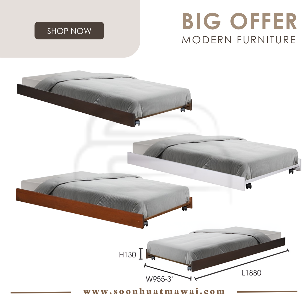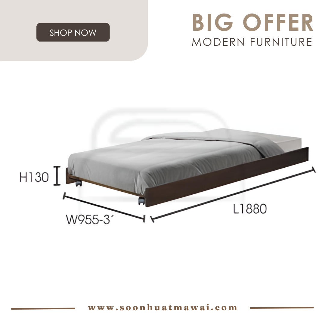 XLV 200 PULLOUT BED 3' SINGLE BED SIZE: H130 L1880 W955 COLOUR: -WHITE -DIRTY OAK -WENGE