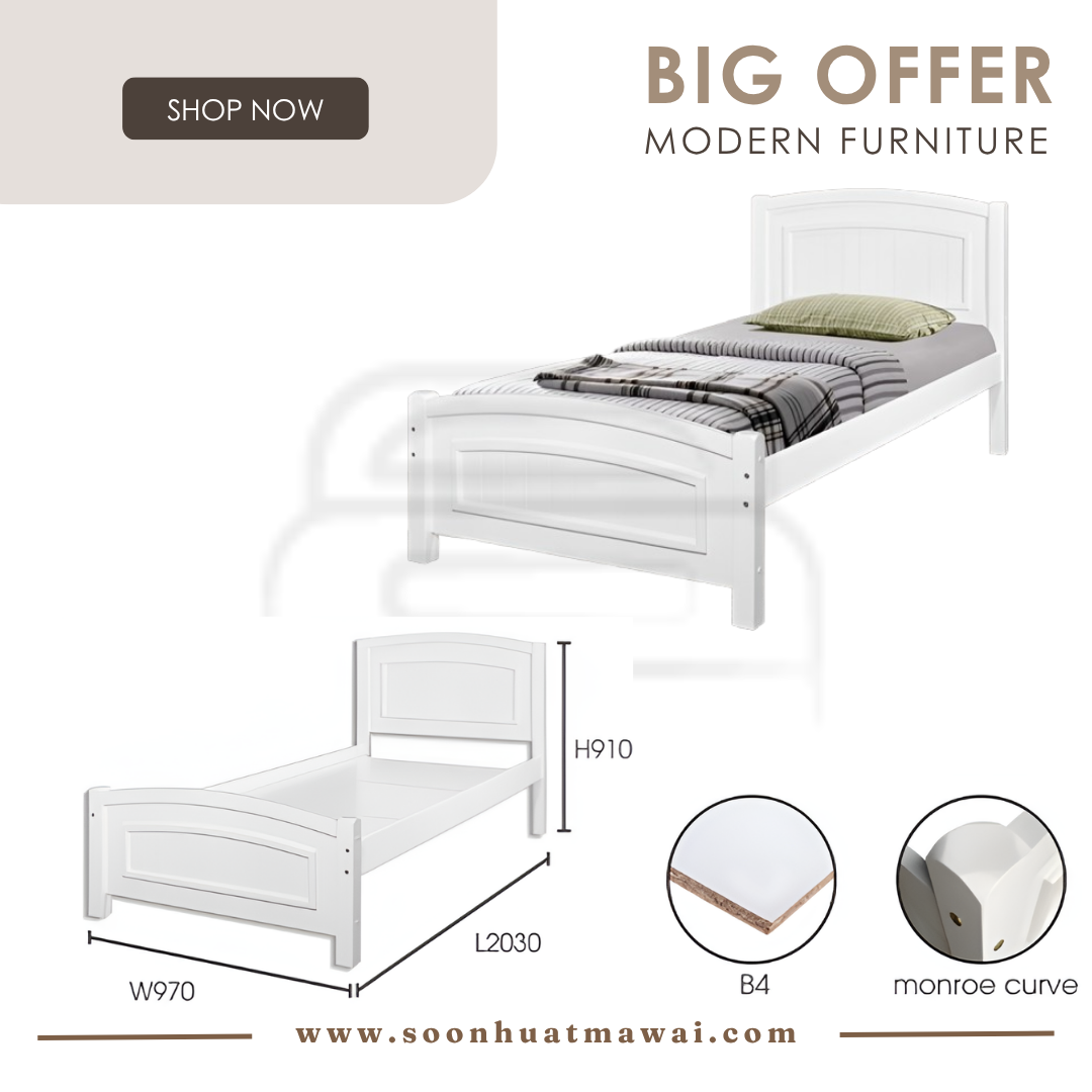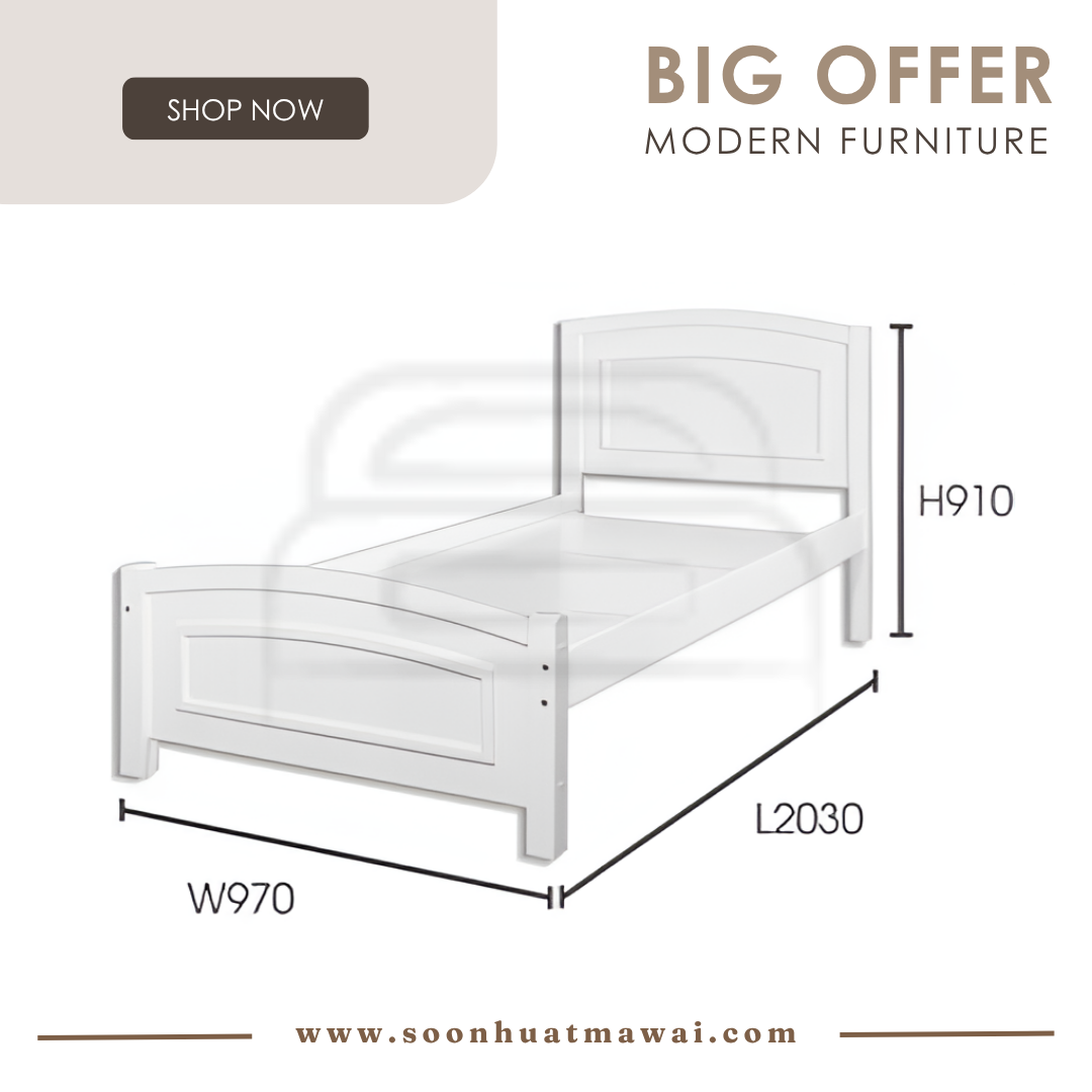 XLV ANNABELLE SINGLE BED SINGLE BED SIZE: H910 L2030 W970 BED BASE: -B1 -MONROE CURVE COLOUR: -WHITE