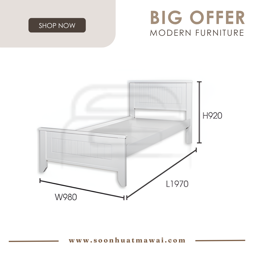 XLV TIARA SINGLE BED SINGLE BED SIZE: H920 L1970 W980 BED BASE: -B4 COLOUR: -WHITE