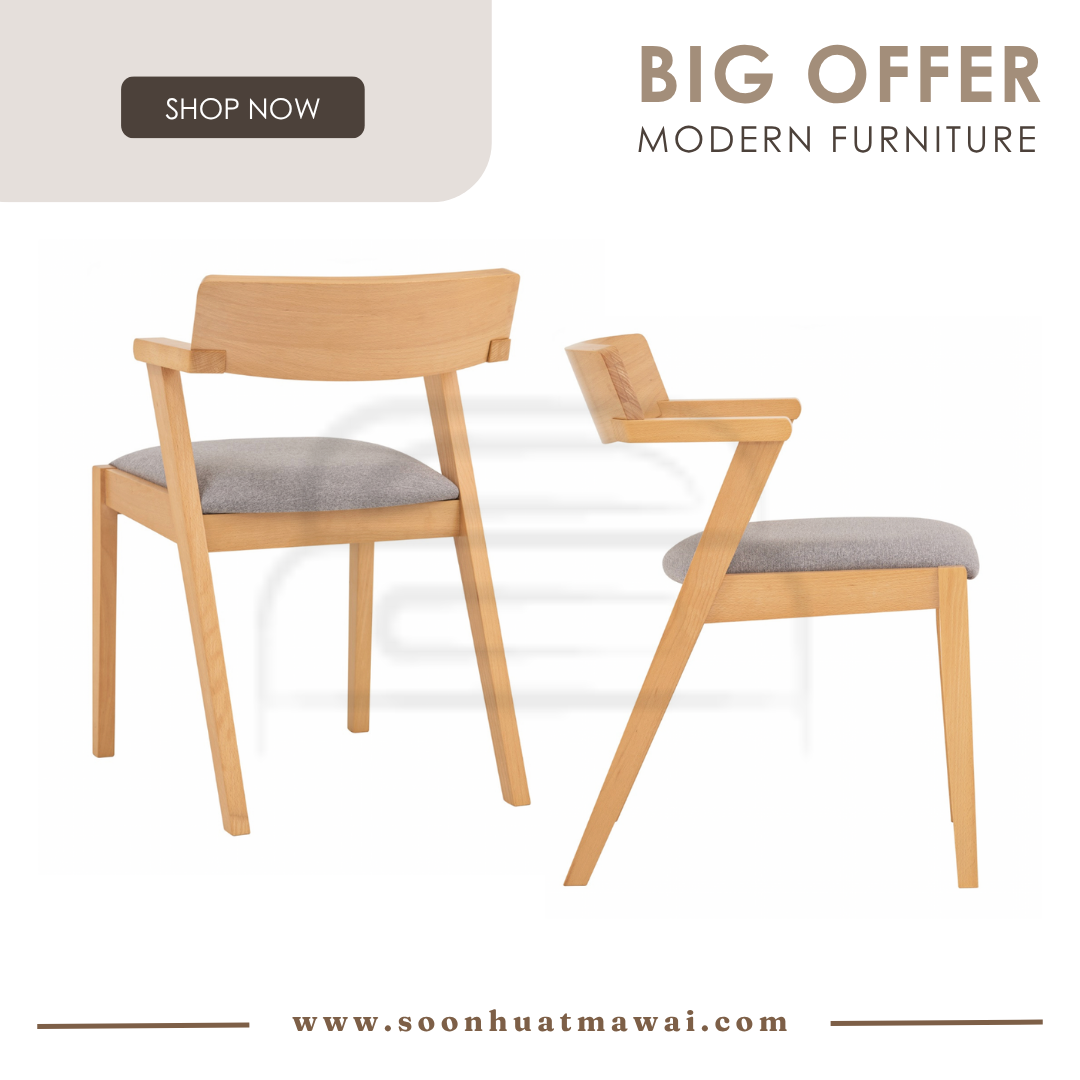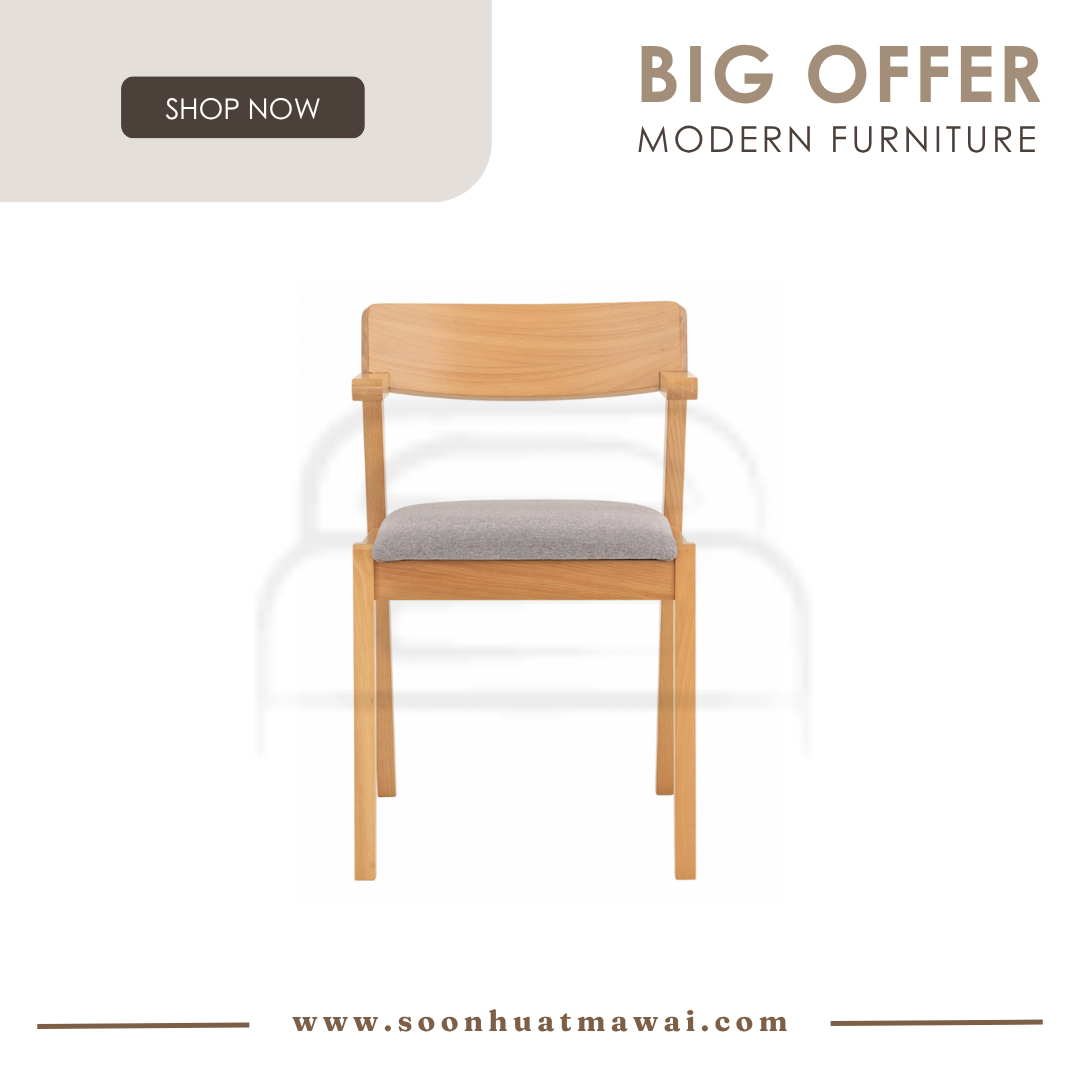 Zola dining chair in Natural colour frame, Light Grey colour Drill fabric seat