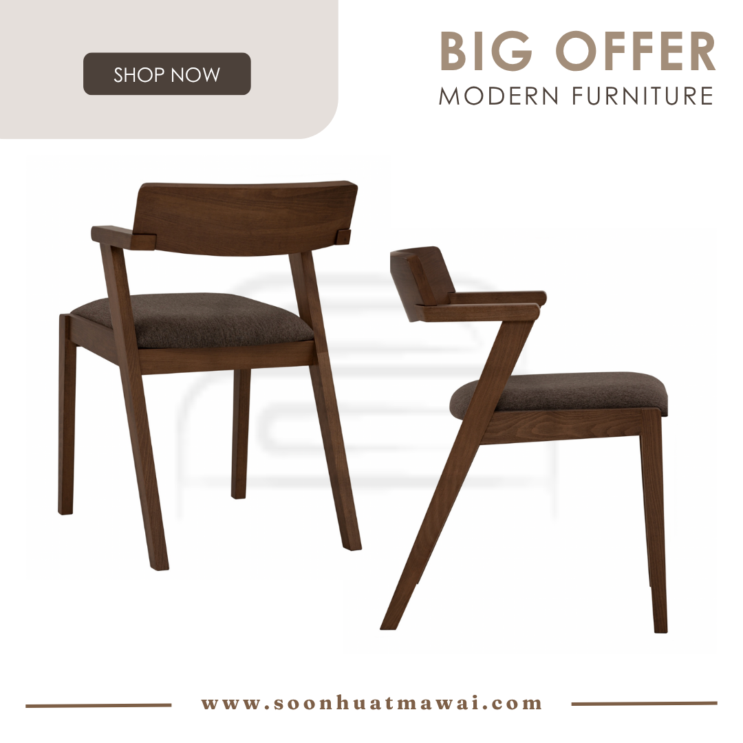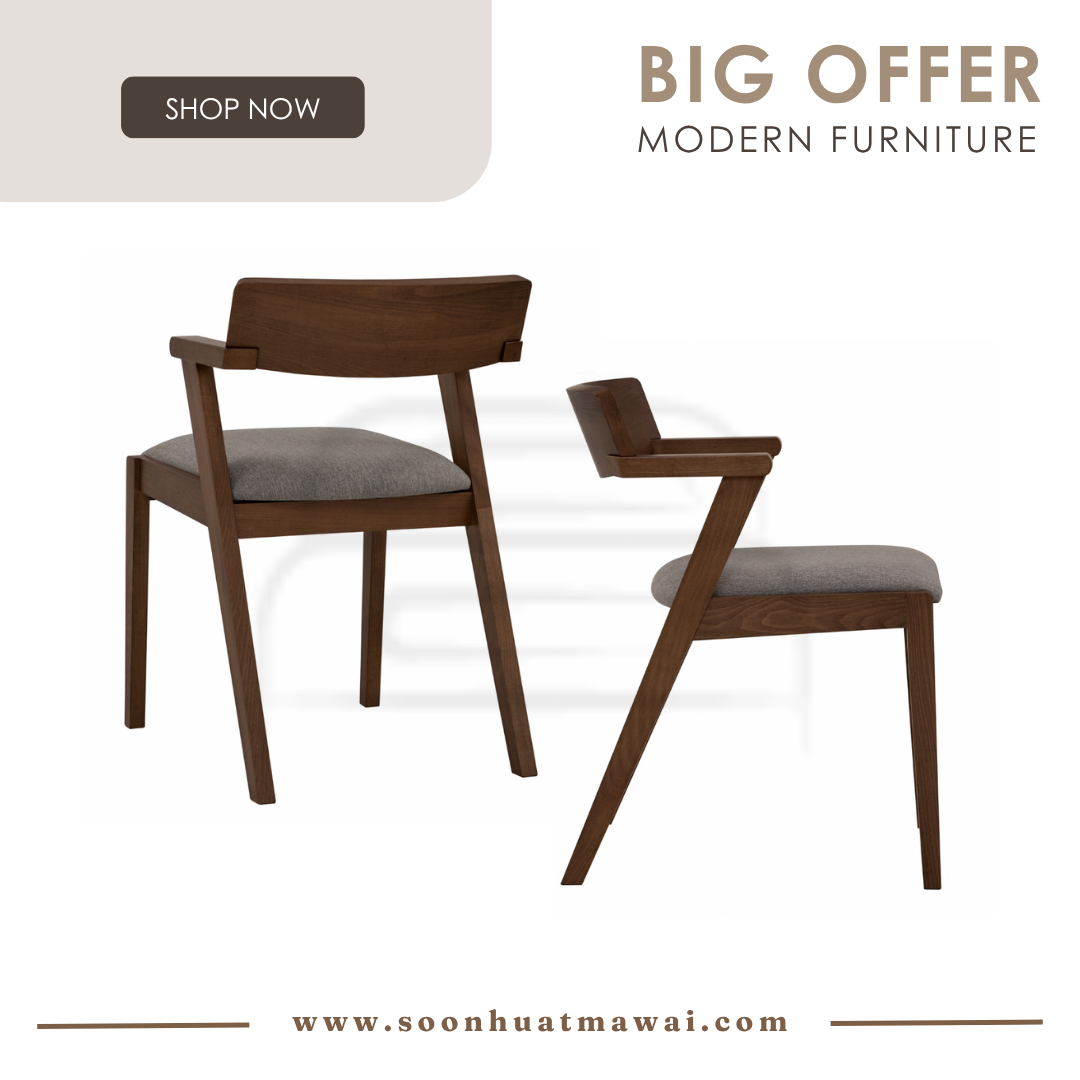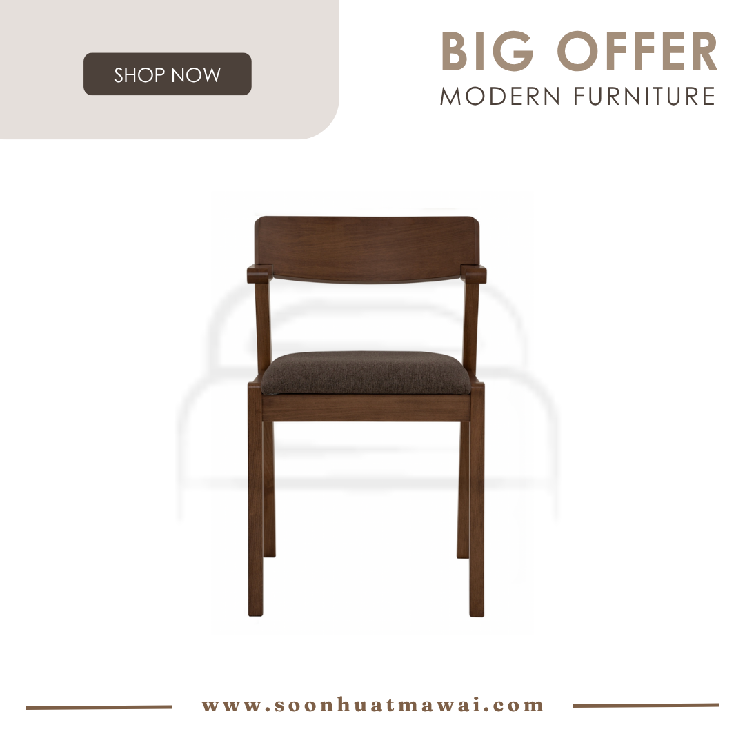 Zola dining chair in Cocoa colour frame, Light Grey colour Drill fabric seat